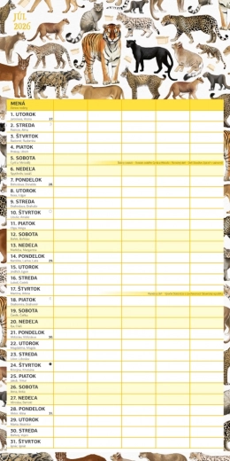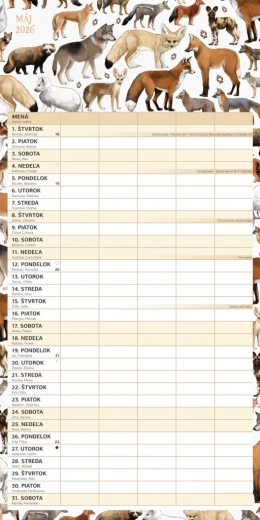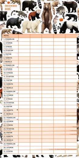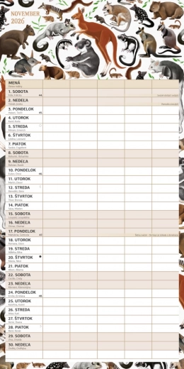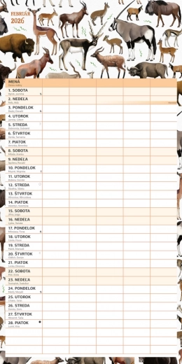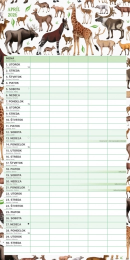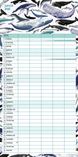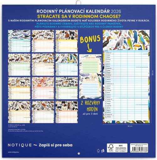 Nyd planlægningen med denne smukke familiekalender Animalium 2026, som indeholder slovakisk kalendarium og gør det let at organisere aktiviteter for op til fem medlemmer af husstanden.