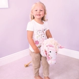 Den lyserøde kæphest fra Bigjigs Toys er det perfekte supplement til børneværelset. Denne legeting giver en fantastisk mulighed for fantasifuld leg, hvor børn kan efterligne ridning.