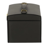 Dette stilfulde smykkeskrin kombinerer moderne minimalisme med praktisk funktionalitet. Den robuste konstruktion med tekstiloverflade, gyldne beslag og et behageligt håndtag gør det nemt at transportere, mens den bløde indvendige foring beskytter smykker mod ridser. Det indvendige spejl gør det muligt hurtigt at finpudse accessories uden et separat spejl.