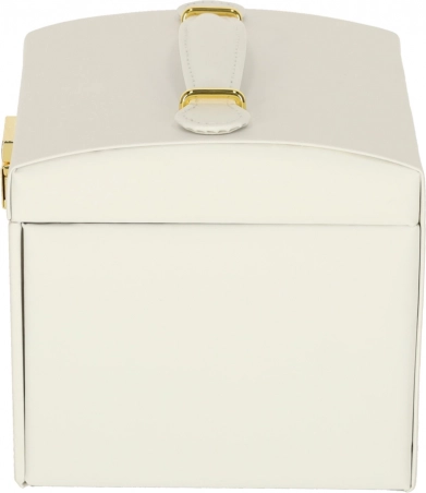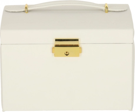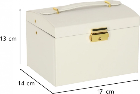 Holdbar udførelse, hvidt design med gyldne detaljer og mulighed for låsning med nøgle sikrer sikker opbevaring af dine skatte både hjemme og på farten. Smykkeskrinet er let, kompakt og samtidig rummeligt nok til en større samling.