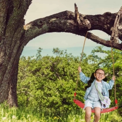 Havegynge til børn udmærker sig ved sin holdbare konstruktion og lette håndtering. Den er ideel til udendørs sjov og tilpasser sig let til barnets alder og størrelse.
