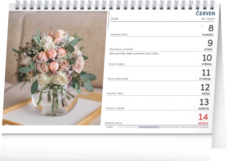 Blomster på hvert bord med vores smukke bordkalender Blomster 2026. Indeholder både tjekkiske og slovakiske navne, helligdage og månefaser.