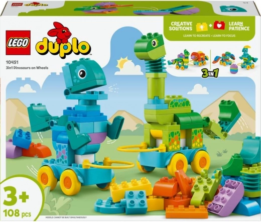 Dette byggesæt handler ikke kun om at skabe, men også om legende læring. LEGO DUPLO klodser er designet til at være lette at håndtere, hvilket understøtter udviklingen af tålmodighed og koncentration hos børn. Sættet indeholder også en plade med hjul, så dinosaurerne kan forvandles til køremodeller, hvilket giver endnu mere sjov for alle små fans af LEGO DUPLO køretøjer.