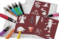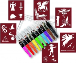 Magisk sjov for små troldmænd. Oplev magiens verden med dette kreative sæt blæse-tuscher med Harry Potter-motiver. Sæt blot tuschen i holderen og pust – og der opstår en original spray-effekt.