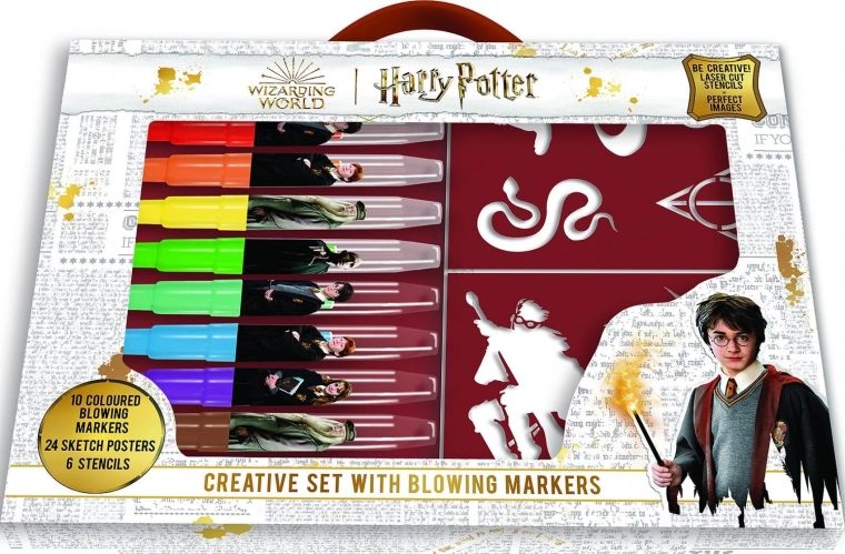Kreativt sæt med blæse-tuscher Harry Potter til små troldmænd, 10 stk med skabeloner. Magisk kunstnerisk underholdning!
