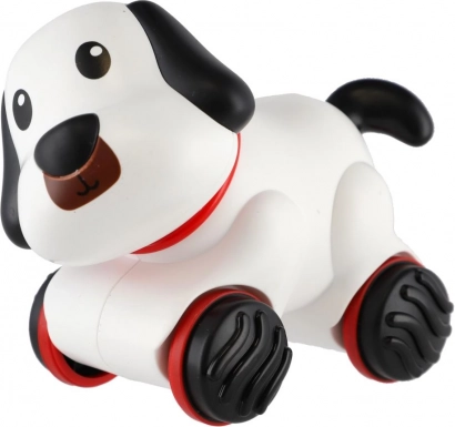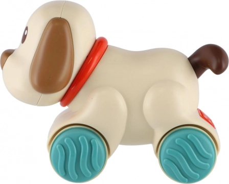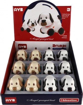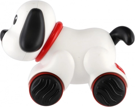 Sød plastikhund, der kører frem af sig selv, når den trækkes op. Takket være det tilbagefjedrende optræk er legetøjet nemt og sjovt for børn i alle aldre.