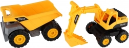 Fantastisk sæt til små byggere! To holdbare plastbyggebiler med friløb, der passer perfekt i enhver samling. De kører let på alle overflader – giv dem blot et lille skub, og så kører de.