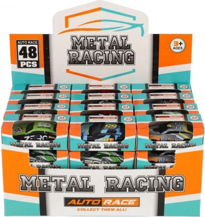Mini racerbil 6 cm med kombination af metal- og plastdele, mix af farver, til børn fra 3 år. Ideelt legetøj til rejsen.