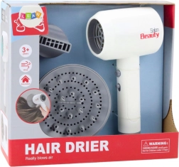Hårtørreren er designet med hensyn til sikkerhed og komfort for vores yngste brugere. Den er intuitiv at betjene – indsæt blot et AA-batteri, hvilket aktiverer en blid luftstrøm og realistiske lydeffekter. To udskiftelige mundstykker gør det muligt at skabe forskellige frisurer: den aflange vedhæftning er ideel til at glatte håret, mens diffusoren er perfekt til bølger og krøller.