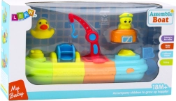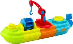 Båden består af fire farverige moduler, der sammen danner en stor sammenstilling. Ombord er der sjove passagerfigurer – en and og en skildpadde, samt mange bevægelige dele, såsom en kran med en krog, en vandmølle og en vandkanon. Anden kan sprøjte vand, hvilket vil fremkalde et smil hos ethvert barn. Yderligere beholdere tillader vandoverførsel, hvilket beriger legen og fremmer sensorisk udvikling.