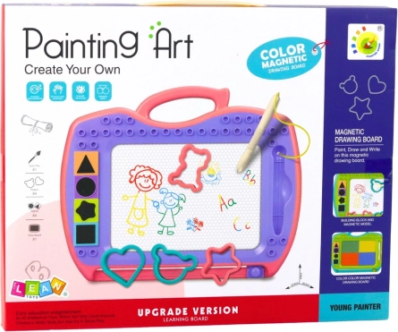 Magnetisk tegnebræt giver børn mulighed for at tegne og skrive uden at bruge papir og blyanter. Det er nok at bruge den vedlagte magiske pen og lave unikke tegninger. Med den specielle skyder kan hver tegning hurtigt slettes, og brættet er straks klar til næste brug. Det er uendelig sjov og læring i ét.
