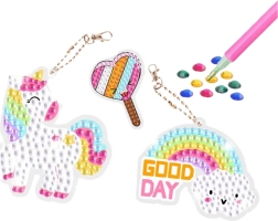 Skabeloner og steder til påsætning af diamanter er markeret – det kræver ingen særlige færdigheder at skabe originale klistermærker og nøgleringe. Det er en afslappende aktivitet, der udvikler koncentration, tålmodighed og manuel dygtighed. Ideel både til individuel kreativitet og sjov med familien.