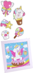 Sættet indeholder alt nødvendigt for at fuldføre hele projektet, inklusive en dekorativ ramme med et fortryllende billede af en enhjørning. Legetøjet er den perfekte gave til små kunstnere.