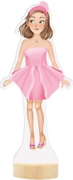 - Dukke, 30 magnetiske dele (tøj, sko, accessories), træfod