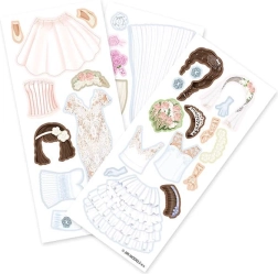 Takket være tre ark med magnetiske dele kan dit barn skabe utallige modekreationer og klæde dukken på efter egne ønsker.