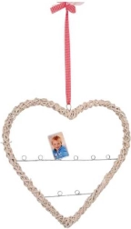Dette dekorative flet-hjerte med hvid patina er et ideelt valg til overskuelig og kreativ fremvisning af dine kæreste øjeblikke. Takket være metaløjerne kan du nemt fastgøre op til 8 fotos og hurtigt udskifte dem når som helst. Den hængende sløjfe i rød-hvidt ternet mønster giver et hyggeligt, vintage præg.