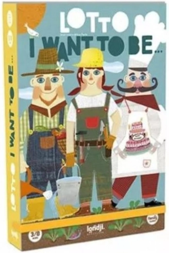 Loto LONDJI Jeg vil gerne være er det perfekte spil for hele familien, som understøtter læring om professioner på en underholdende måde. Spillerne har kort med illustrationer af figurer fra forskellige erhverv og brikker med værktøj, som er karakteristiske for disse professioner.