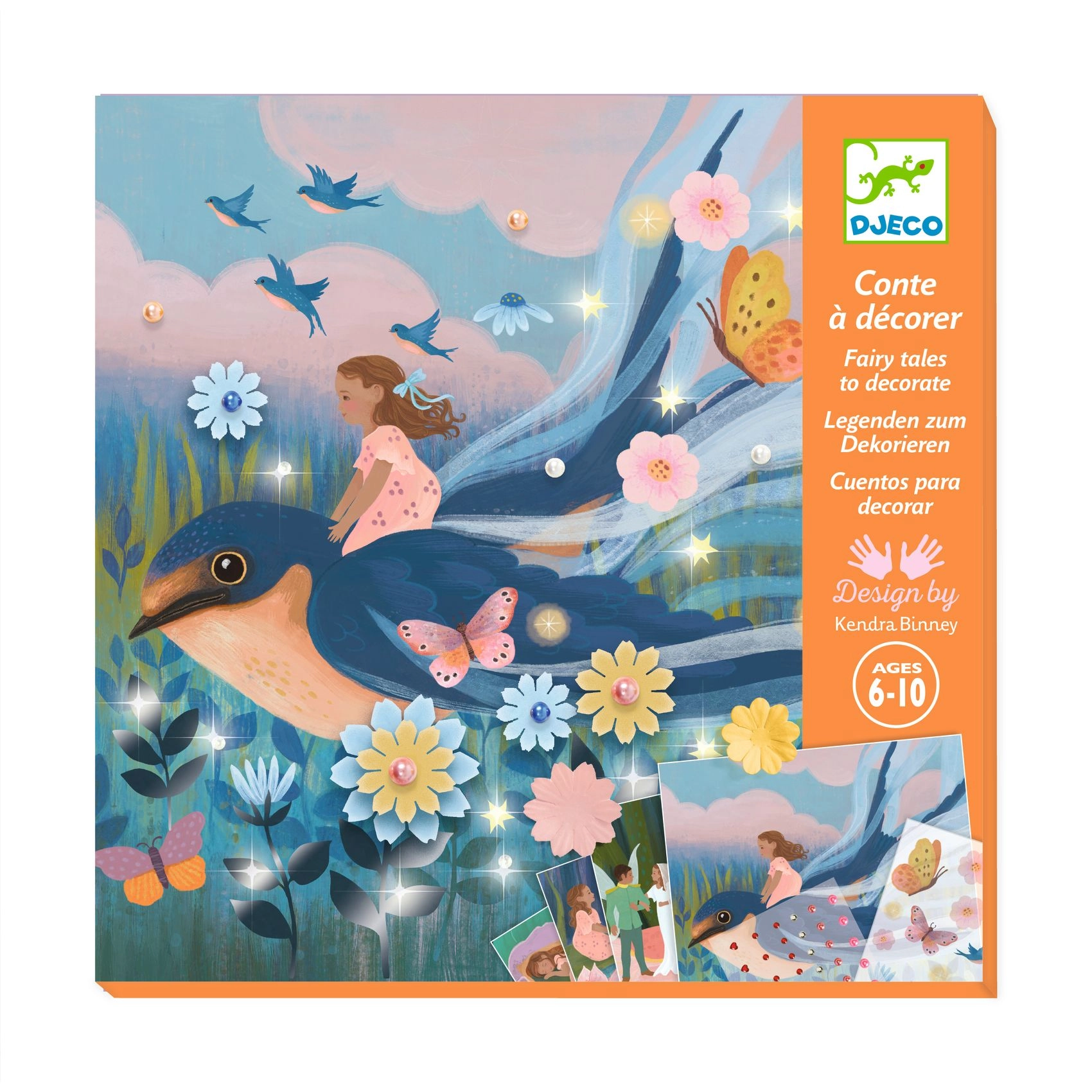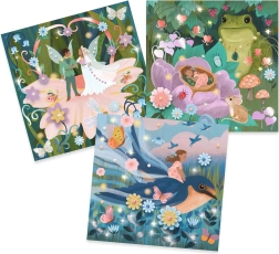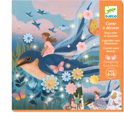 DJECO Eventyr til at fuldende Tommelise er et kreativt sæt, der tilbyder utallige muligheder for at dekorere papirs scener med klistermærker, gnidetryk og papirblomster. Sjov underholdning for små kunstnere.