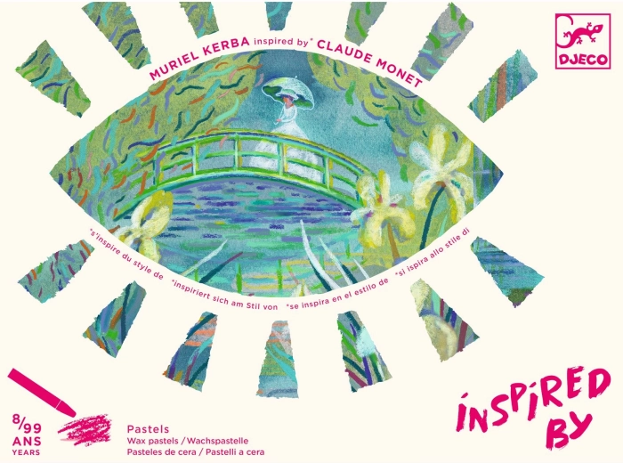 Skab et unikt triptykon inspireret af Monet med dette kreative sæt fra DJECO, som indeholder 3 billeder til at færdiggøre og et sæt med 12 farvede pasteller. Ideelt til kunstnere i alle aldre.