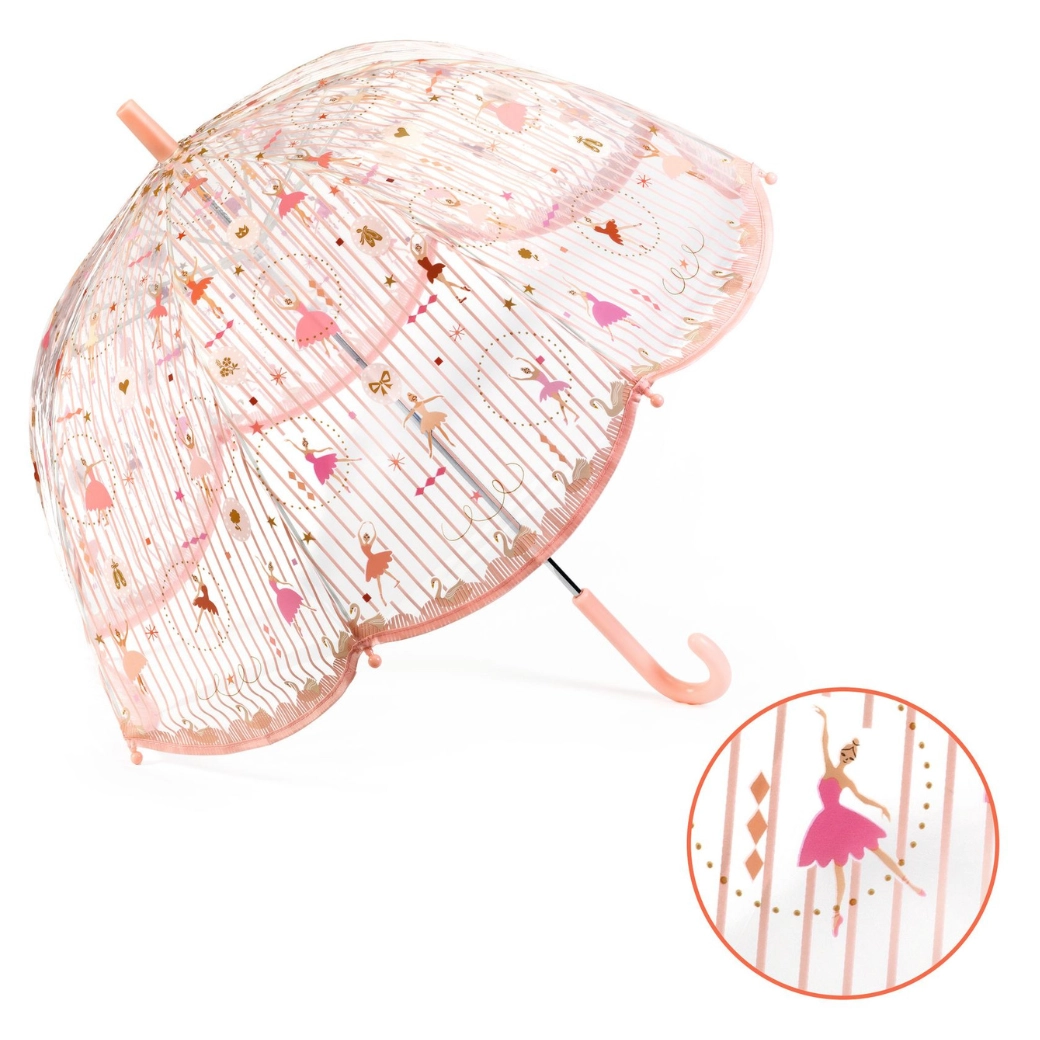 Stilfuld og praktisk paraply med ballerina-motiv, som imponerer ikke kun med smukke illustrationer, men også med sin funktionalitet. Det gennemsigtige design gør det muligt for barnet at se, hvor det går, og sikkerhedssystemet sikrer nem åbning uden at klemme fingrene.