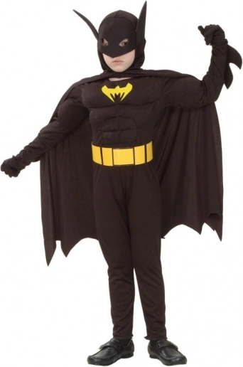 Vælg til dit barn et karnevalkostume i flagermusmand-stil, som gør det til stjernen ved enhver begivenhed. Kostumet passer til børn i alderen 5-9 år og egner sig perfekt til mange forskellige lejligheder. Her er, hvad der er inkluderet: