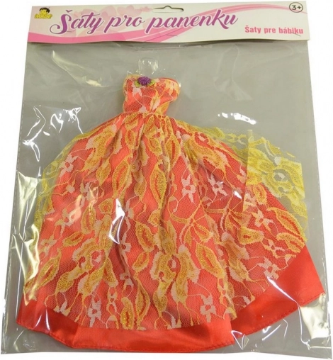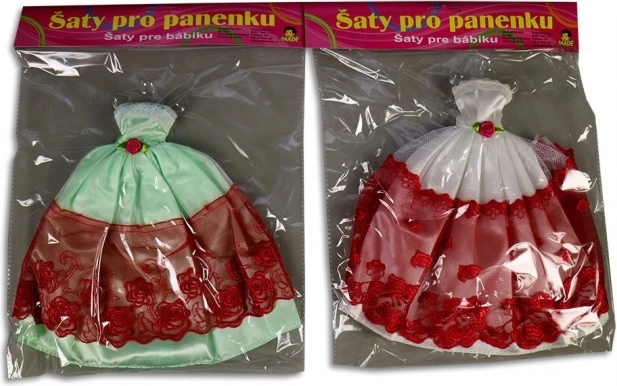 Elegant festkjole til dukke 26 cm i 21 varianter. Ideel til piger 3+. Tekstilmateriale, uden batterier.