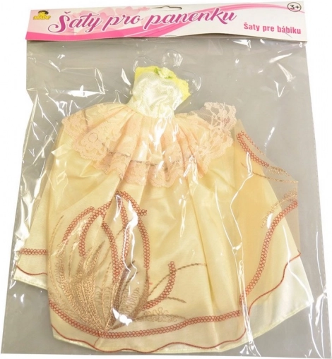Smuk festkjole til dukke, der giver et magisk og elegant udseende til enhver dukkefest og leg.