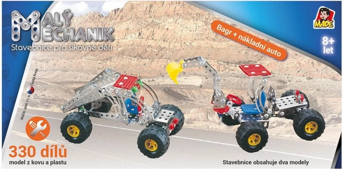 Byggesættet Lille mekaniker er ideelt til at udvikle børns kreativitet og tekniske tænkning. Det indeholder 330 dele, som børnene forbinder med skruer af metaldele og plasttilbehør.