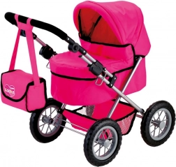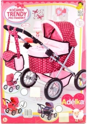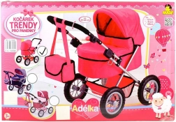 Dyb dukkevogn i moderne design i lyserød farve, ideel til dukker op til 42 cm, inklusive dukken Adélka. Let at folde og folde ud for bekvemme ture.