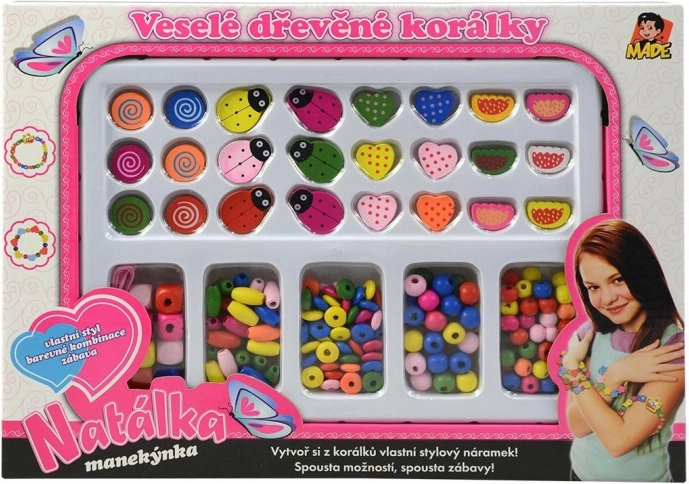 Dette kreative perlesæt til små designere er en fantastisk måde at udvikle deres kreativitet og finmotorik på. Børn kan skabe deres egne smykker efter deres egen fantasi, hvilket støtter udviklingen af fantasi og æstetisk sans. Sættet indeholder: