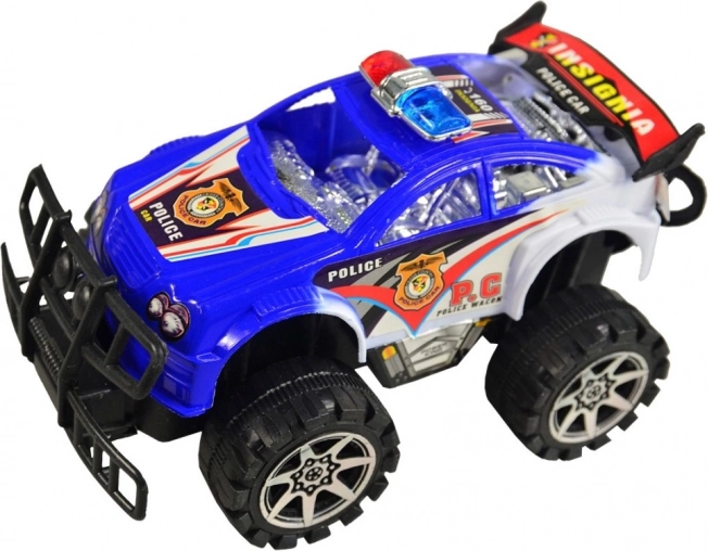 Politi-terrænbil, den ideelle legetøj for små eventyrere. Udskiller sig ved sit plastmateriale og de store hjul, som klarer ujævnt terræn.