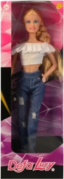 Opdag den stilfulde dukke Lucy, som er et uundværligt supplement til din samling. Hun er klædt i moderne denimtøj.