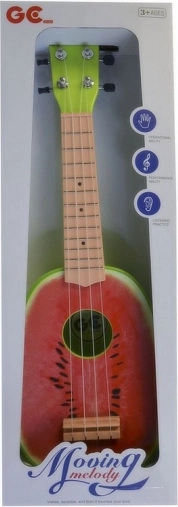 Børne-ukulelen fra MaDe er en smuk replika, der hjælper børn med at udvikle deres musikalske talent. Dette plastinstrument med et livligt sommermotiv er ideelt til alle begyndende strengeplukkere.