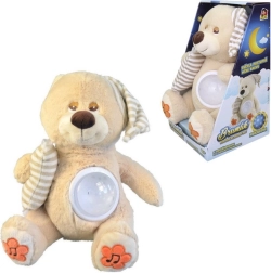 - Lysprojektor: Bamsen projicerer et blidt, skiftende lys, som beroliger og forbereder på søvn.