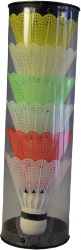 Badmintonfjerbolde i rør til udendørs sjov. Ideelle til børn fra 3 år, sættet indeholder 6 kvalitets fjerbolde i plast.