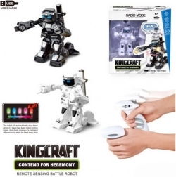 Oplev spændingen og begejstringen ved kampene med MaDe Kæmpende Robotter. To robotter, hver med sin egen fjernbetjening, tager kampen op i arenaen direkte hjem til dig. Robotten reagerer på spillerens controller-bevægelser, hvilket øger dynamikken og realismen. En lysende LED-diode informerer dig om kæmperens kondition, og nederlaget indtræffer efter fem slag, når robotten automatisk slukker.