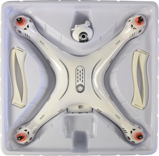 - Fleksibilitet og stabilitet: Takket være det fireaksede system og den seksaksede gyroskop kan dronen flyve jævnt og bevare stabilitet.
