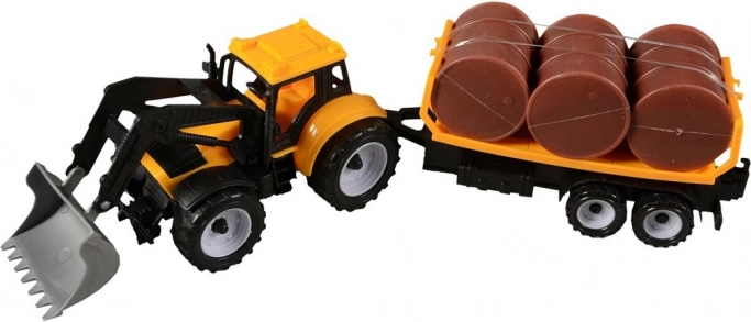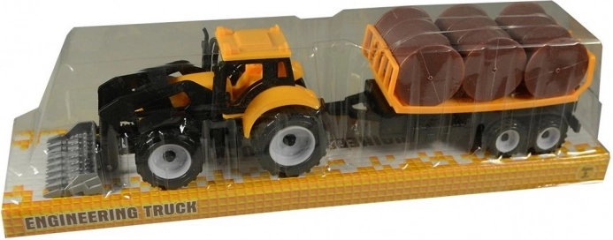 Traktor med trailer med friktionstræk er et fantastisk legetøj for små landmænd. Den er beregnet til børn fra 3 år og støtter deres kreative leg takket være den robuste konstruktion og de iøjnefaldende farver.