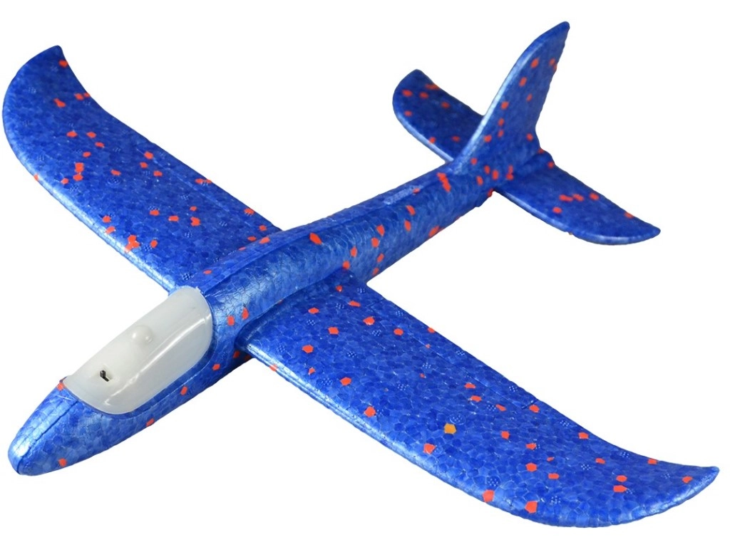 Flyet er lavet af holdbar polyester, som tåler mange flyveture og landinger. Takket være 3 AG13-batterier lyser det klart og fanger enhver betragters opmærksomhed. Opmuntr dit barns kreativitet og sportslige ånd med dette fantastiske legetøjsfly.