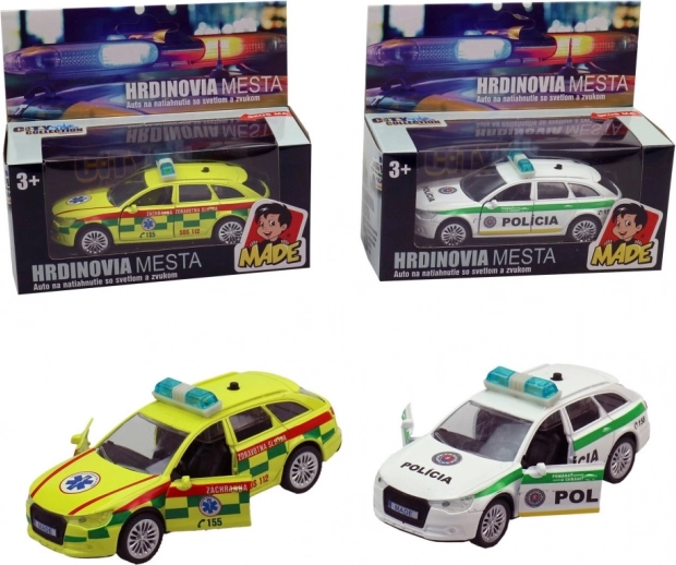 Redningstjeneste og politi bil bringer sjov og realistisk leg for børn. Takket være træk-tilbage motoren og de funktionelle lys- og lydeffekter vil børnene føle sig som på en rigtig mission.
