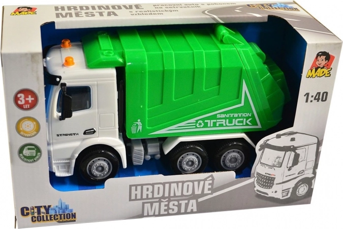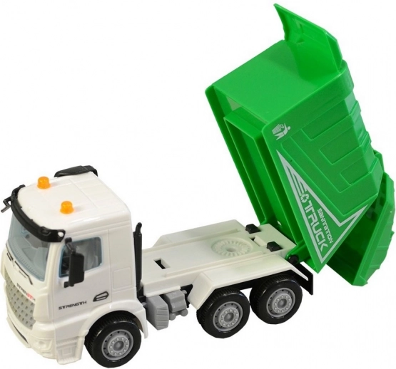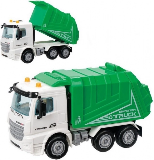 Fantastisk skraldebil med friktionsmotor, 16 cm lang, som vil glæde enhver lille bilentusiast. Ideel legetøj til børn fra 3 år.