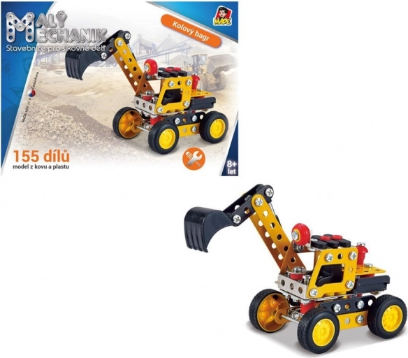 Byggesættet Lille Mekaniker er ideelt til udvikling af børns motoriske færdigheder og kreativitet. Det indeholder 155 dele af metal og plastik, som gør det muligt at samle en hjulgravemaskine.