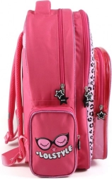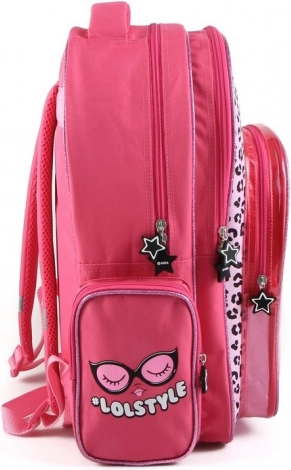 Rygsækken er dekoreret med et attraktivt LOL-motiv med teksten '#LOLSTYLE' og et billede af briller. Velegnet til børn, der vil vise deres stil.