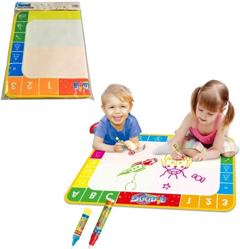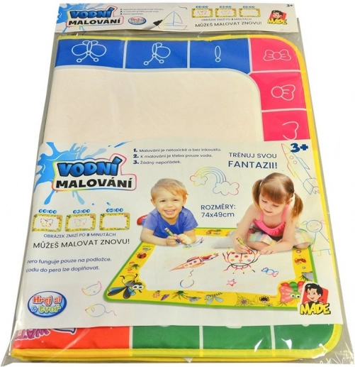 Oplev den magiske verden af vandmaling med motiver af bogstaver og tal. Dette kreative legetøj fra kollektionen “Leg og skab” gør det muligt for børn at udvikle deres fantasi fuldt ud uden brug af farver. Fyld den medfølgende pen med vand og brug den på måtten for at starte den magiske proces: billederne dukker op og forsvinder igen efter 5 minutter, hvilket giver mulighed for gentagen brug og endeløs underholdning.