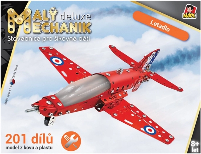 Byggesættet Lille mekaniker fly er et fantastisk legetøj til kreative børn, som gør det muligt at bygge modeller af 201 dele, der forbinder metal- og plastdele med skruer og møtrikker.