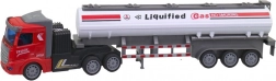 Legetøjet efterligner nøjagtigt en rigtig tankvognslastbil med detaljer som påskrifterne 'Liquified Gas' og 'NO SMOKING'.