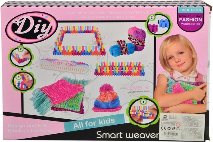 Dette strikkesæt er ideelt til børn fra 3 år, som ønsker at prøve nye kreative aktiviteter. Med dimensioner på 40 x 29 x 6 cm giver det rigelig plads til deres fantasi. Legetøjet er lavet af høj kvalitet plast, hvilket sikrer dets holdbarhed og sikkerhed under leg.