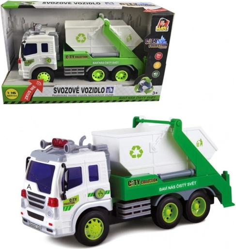 Hold verden ren med City Collection! Denne realistiske skraldebil fra MaDe er udstyret med lys og lyde, som helt sikkert vil fascinere enhver lille miljøentusiast.