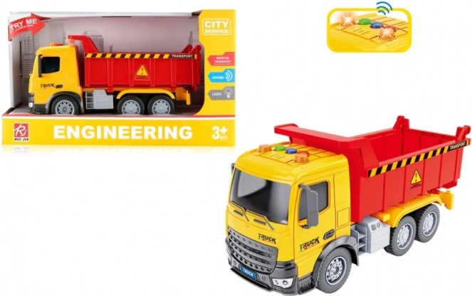Lastbil på trækinerti med dimensioner 23 x 8 x 14 cm er et ideelt legetøj for børn. Dette batteridrevne legetøj indeholder lys- og lydeffekter, der vil glæde enhver lille dreng.