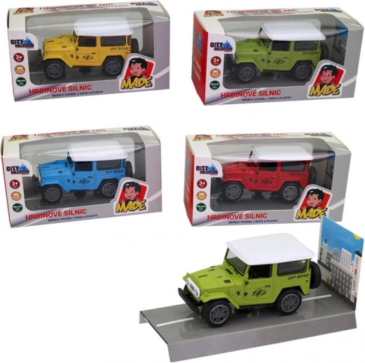 Metal Jeep med returmekanisme til børn 3+, ideel til små racerkørere.